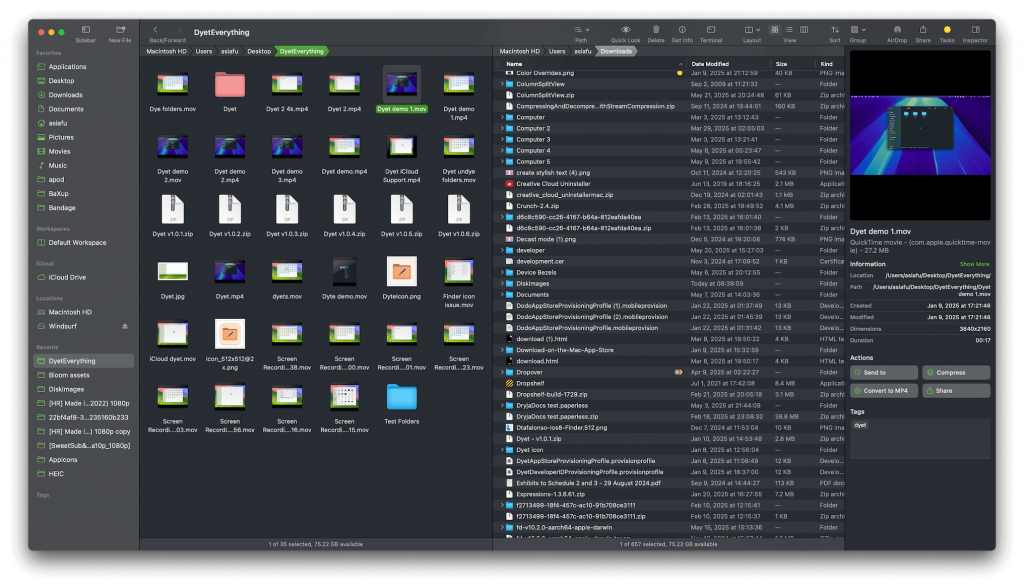 Beispielsweise kann jedes Fenster so eingestellt werden, dass sich die Spaltenbreite an den Dateinamen anpasst. Genial! Warum nicht gleich so beim Finder? Im Film wird’s gezeigt.